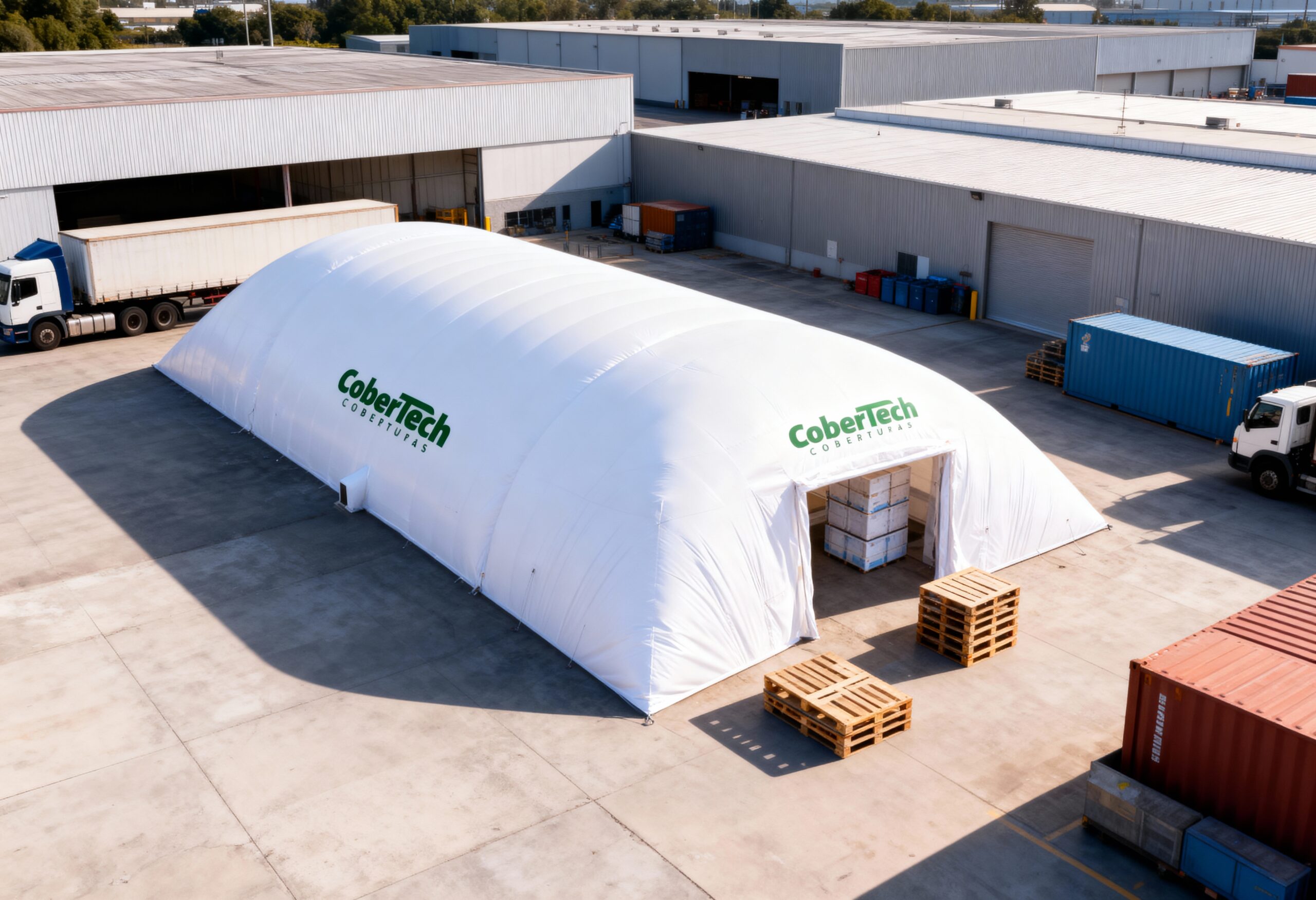 A CoberTech oferece galpões infláveis de alta performance, desenvolvidos para atender operações que exigem rapidez, eficiência e segurança.